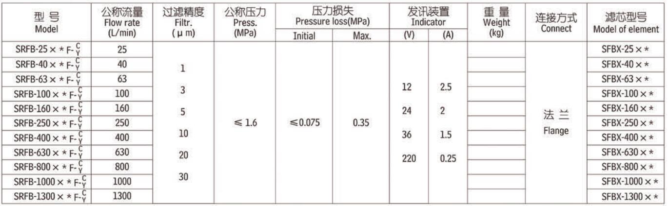 SRFB-250*10F SRFB-250*20F SRFB-250*30F