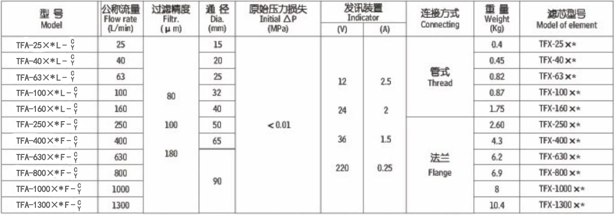 TFA-630*80F-Y TFA-630*100F-Y TFA-630*100F-Y